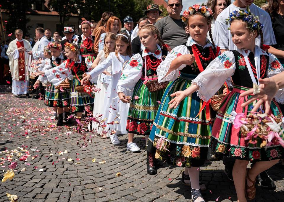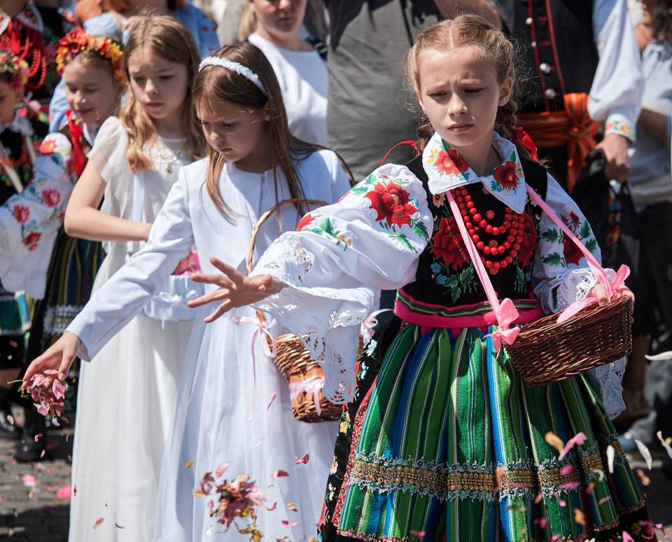 Łowicki folklor należy do najbardziej rozpoznawalnych i cenionych nie tylko w Polsce, ale także na całym świecie. Już wiele lat temu, w 1933 roku, procesję Bożego Ciała w Łowiczu uwiecznił fotoreportaż opublikowany w prestiżowym magazynie National Geographic. To właśnie tam Łowicz zyskał przydomek „kolorowej stolicy polskiej wsi" – określenie, które podczas obchodów Bożego Ciała nabiera szczególnego znaczenia i doskonale oddaje wyjątkowy charakter tego miejsca.