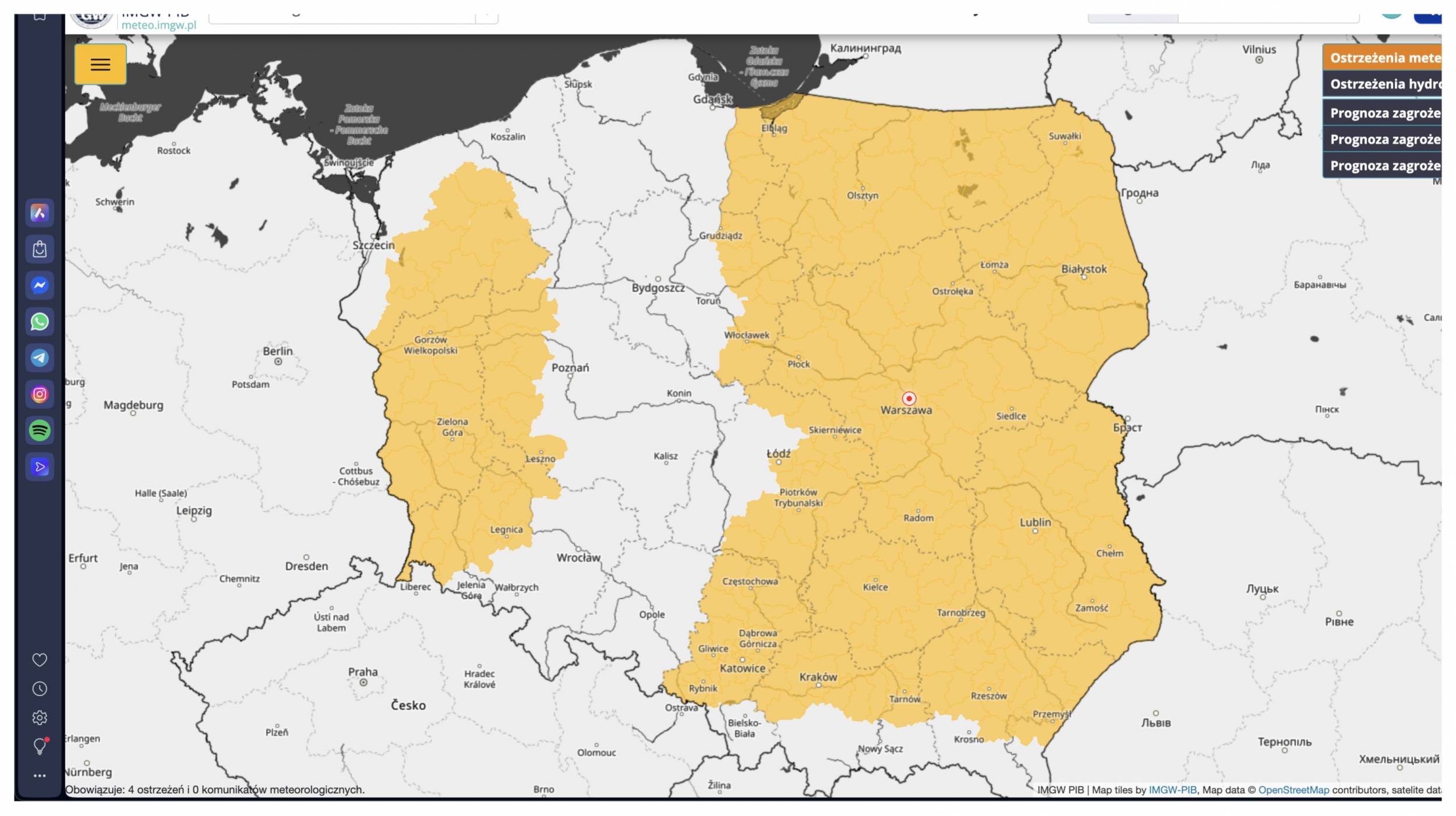 Instytut Meteorologii i Gospodarki Wodnej (IMGW) wydał ostrzeżenie pierwszego stopnia przed gęstą mgłą, która w najbliższych godzinach obejmie większość województwa łódzkiego oraz znaczną część wschodniej Polski.